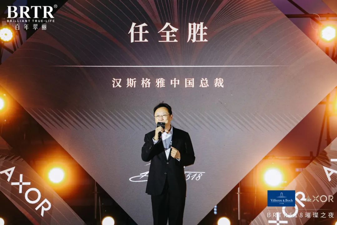 汉斯格雅中国区总裁任全胜先生致辞,汉斯格雅与百年翠丽携手探索高端生活的更多可能。从雅生系列的个性化水体验,到全场景空间的沉浸式呈现,BRTR518设创展厅让更多用户在全感官、一站体验中,更深入感受到极致的用水体验。