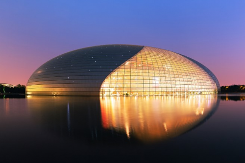 中国国家大剧院位于北京市中心西长安街沿线,比邻人民大会堂和天安门广场,是城市的文化心脏地带。该剧院集歌剧院、音乐厅、戏剧场及小剧场于一体,辅以完善的配套设施,总建筑面积达21.75万平方米。其设计由法国建筑师保罗·安德鲁主持,外观呈半椭球形,展现出简约不失宏大的建筑风格。大剧院不仅是一个表演艺术中心,也是世界优秀文化艺术的展示窗口和交流平台。