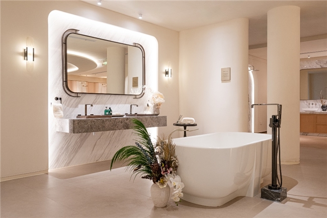 科勒精选丝瑞清雅石浴缸融合多元产品构建风格套间,展现高端卫浴的整体美学