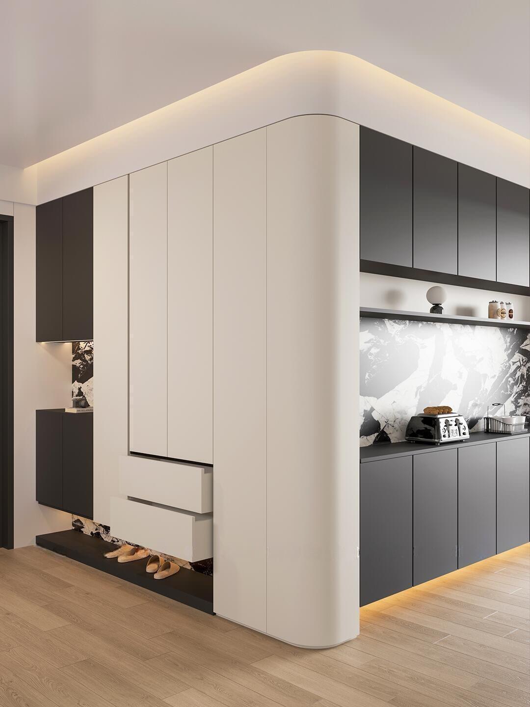 门墙柜一体化方案则直击传统装修的痛点。过往由于门、墙、柜由不同厂家供应,常出现色差明显、风格割裂的问题。金艺家居通过自主生产隐形门、圆弧造型、格栅、PET平开门、护墙板等产品,实现门墙柜同色同质化配套,配合1:1复刻异形工艺能力,可将空间转角的生硬过渡转化为设计亮点。